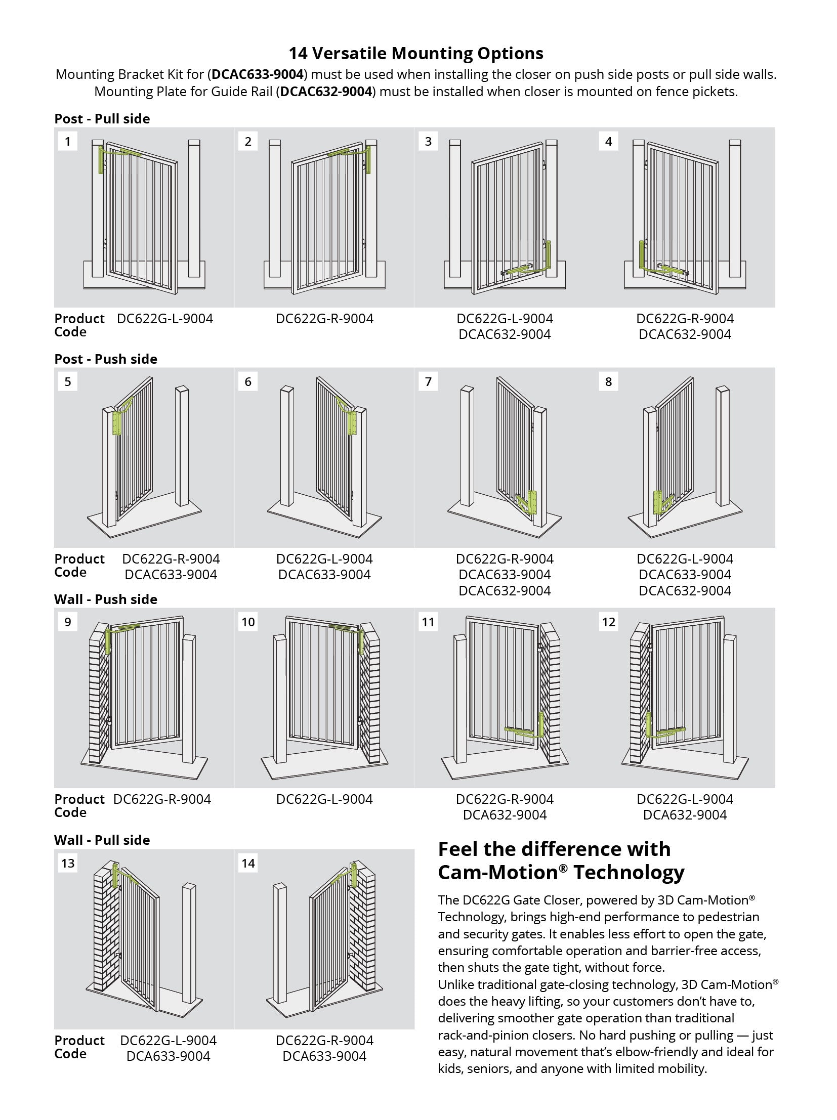 Product Code | DC622G-L-900, DC622G-R-9004, DCA632-9004, DCA633-9004 |